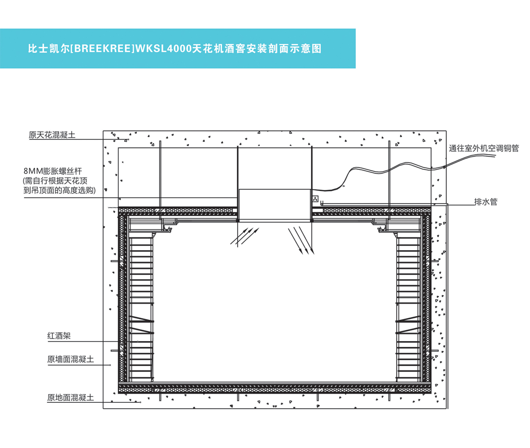 WKSL8000吊(diào)頂式(shì)天花機(jī)酒窖空調安裝剖麵圖