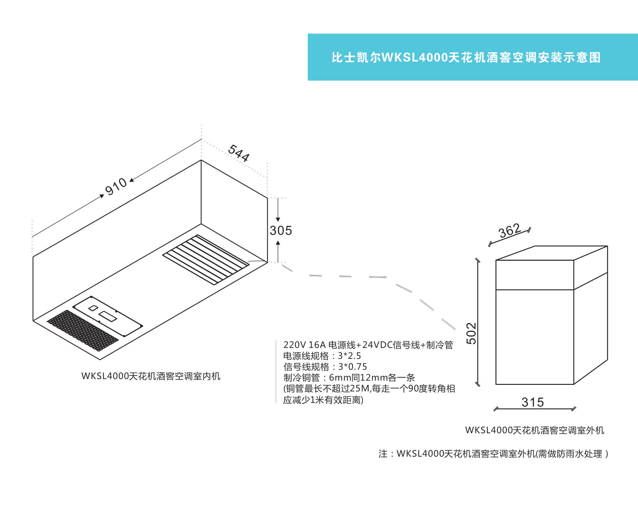 WKSL8000吊頂式天花機酒窖空調安裝示意圖