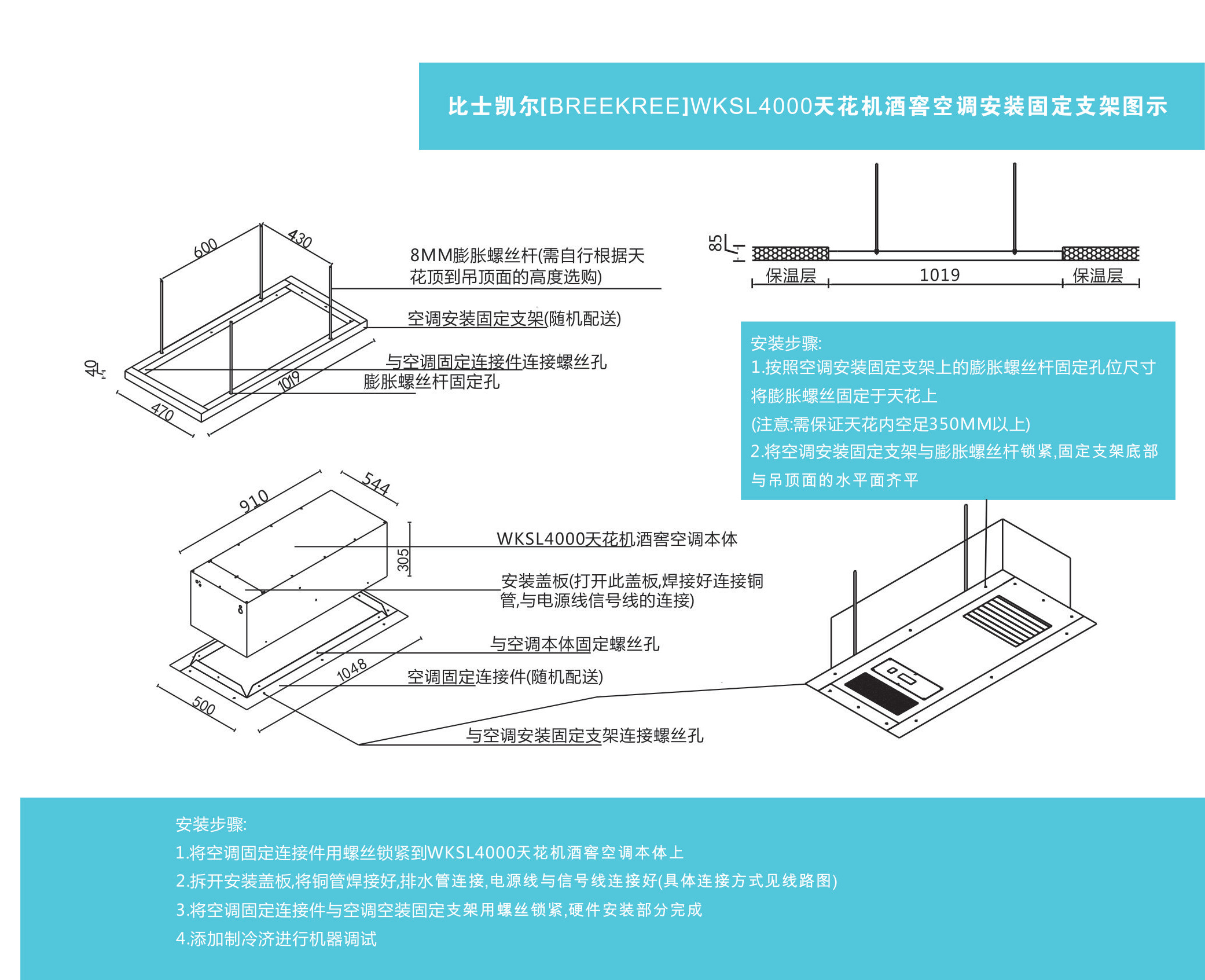 WKSL4000吊頂式天花機酒窖空調固定支架安裝示意圖