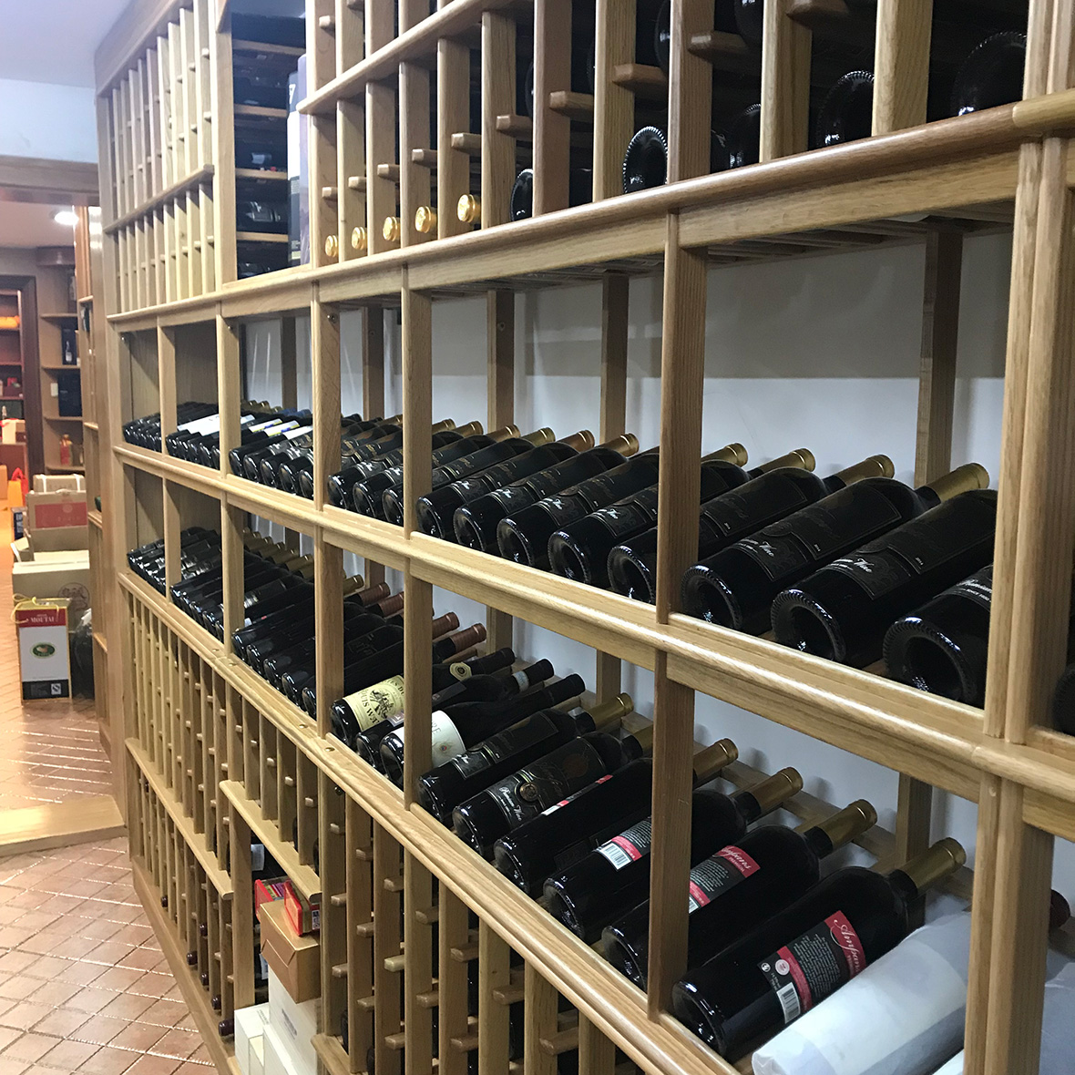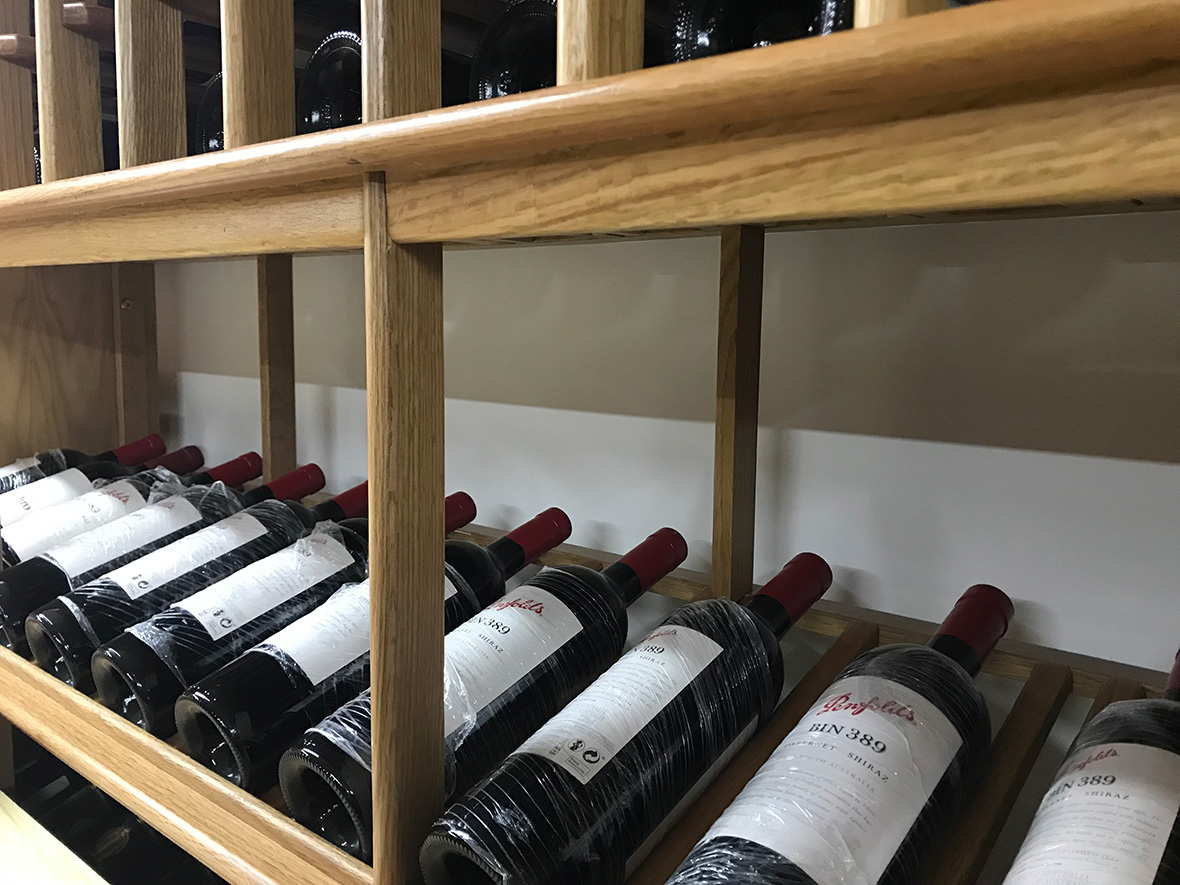美(měi)國紅橡木實木酒架 儲(chǔ)存的(de)澳洲奔富紅酒