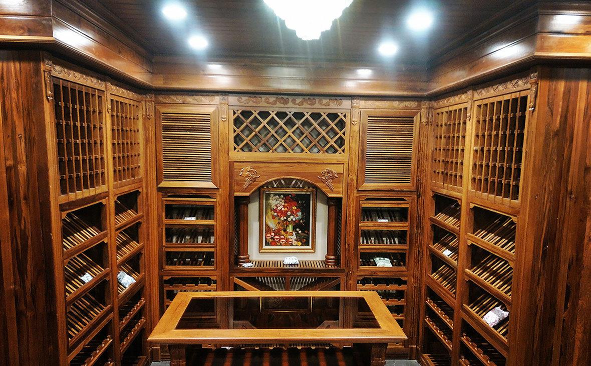 廣州(zhōu)從化億城泉說家庭柚木實木紅酒酒窖設計圖片