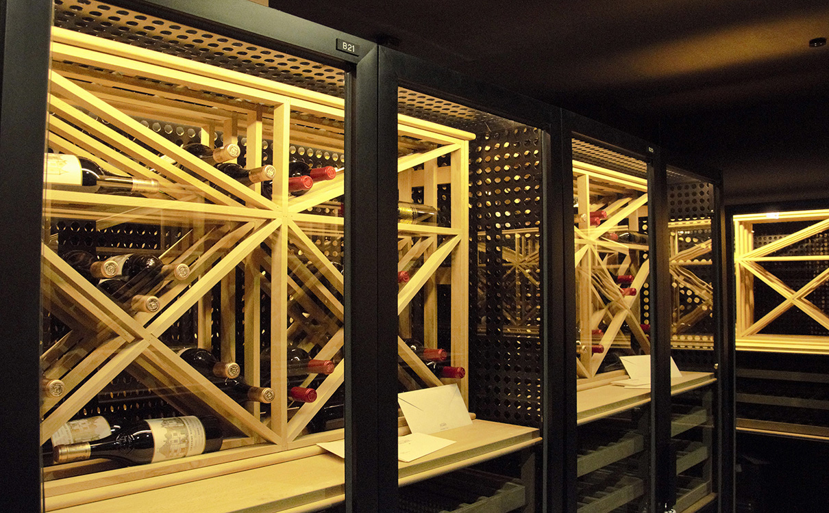 香港HK KOC葡萄(táo)酒銀行不鏽鋼與實木結合酒櫃定製(zhì)定做完成後圖片C