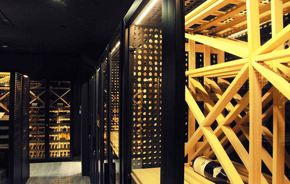 香港HK KOC葡萄(táo)酒銀行不鏽鋼與實木結合酒櫃定製定做完成