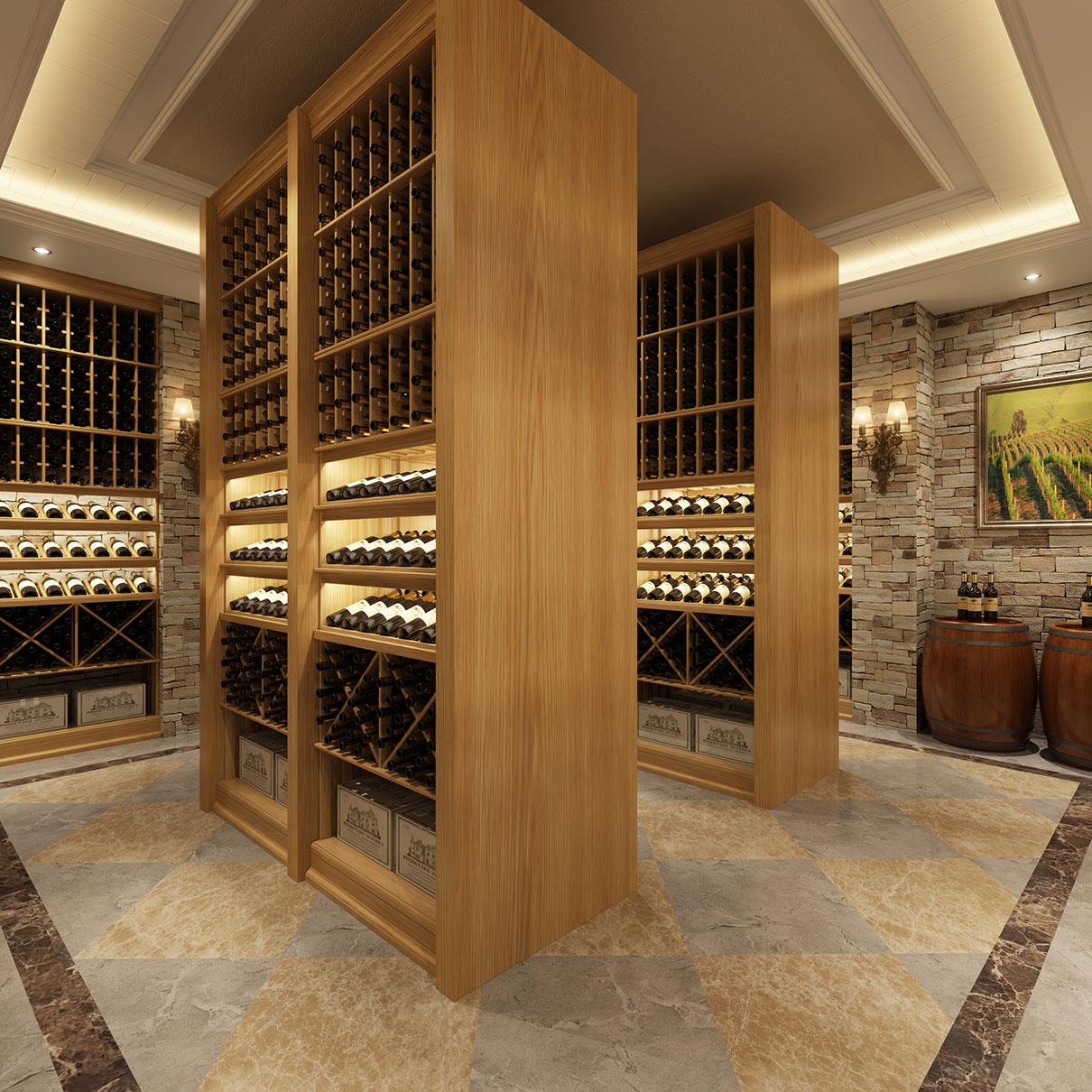 布局簡(jiǎn)約,大方美國紅橡木酒窖設計效(xiào)果圖(tú) 布局簡約(yuē)、大方,精巧、別致,以原木色為主(zhǔ)色調的酒窖設計效果圖.配上柔和的燈(dēng)光(guāng),給人視(shì)覺上的既視感.讓人倍感溫馨舒暢。酒窖整(zhěng)體效果采用美國紅橡木設計,散發出迷人的單(dān)寧芬香,單寧會(huì)很自然的將空氣中的細菌殺死,杜絕空氣中的細菌溫床。將葡萄置於其中,保證其不受外界(jiè)汙染,存儲出高質量的葡萄酒(jiǔ)。細品一杯,夾雜橡木(mù)的芬香,讓(ràng)人神清氣爽。漫步其中.細細觀摩每一瓶葡萄酒.你是否遲遲不願離開。
