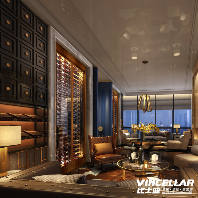 .17c嫩嫩草色视频[VINCELLAR]酒櫃設計定製定做廠家公司設計的玫瑰金不鏽鋼酒櫃效果圖,應用在私人(rén)VIP會所,圖紙分會所區與VIP區